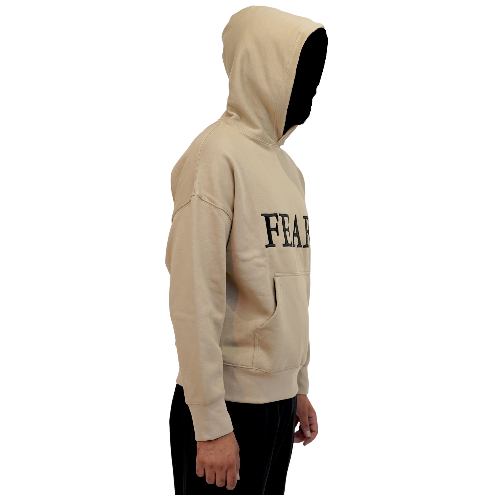 The Core Fear Pullover in Camel represents the starting point of introspection. This powerful yet minimalist piece features only the word "FEAR" meticulously executed in premium embroidery on the chest. The design intentionally strips away the solution, challenging the wearer to activate the "Insight" and discover the guidance of DIRECTED BY GOD themselves. Crafted from our signature 465 GSM heavyweight cotton, this oversized piece offers superior structure and enduring quality, embodying quiet strength. This unique design is delivered with the distinction of our premium packaging.