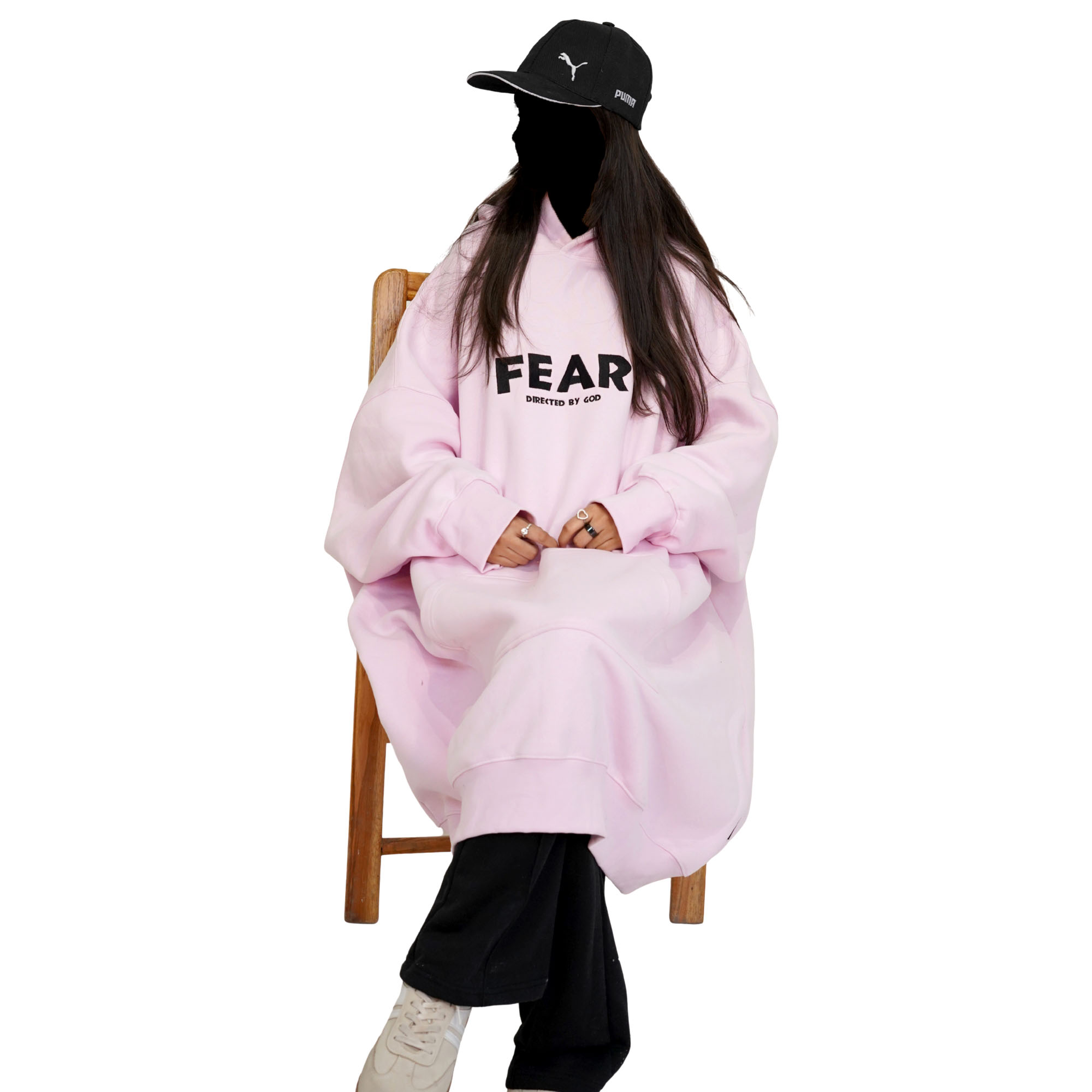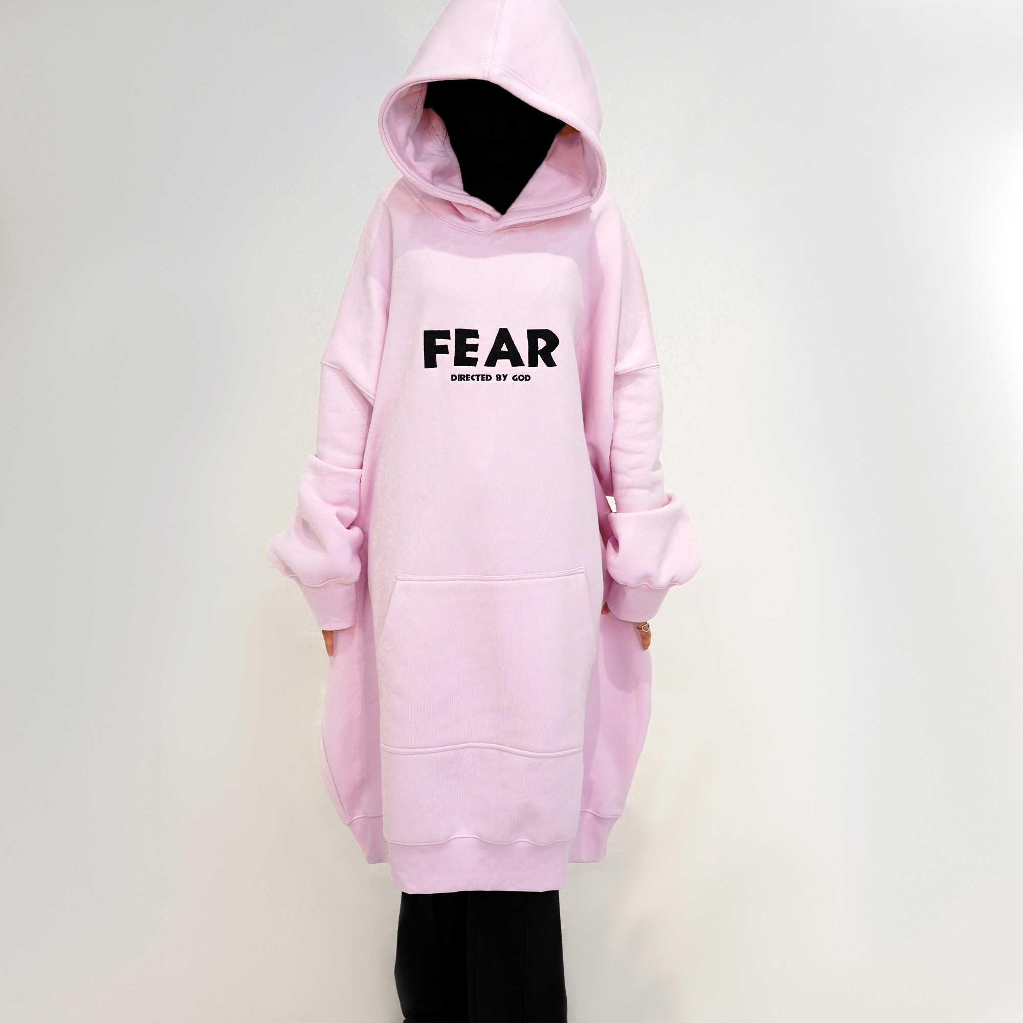 The Fear Grounded Hoodie redefines strength through surrender. Soft pastel pink 465 GSM heavyweight cotton, oversized fit with dropped shoulders and extended length for an effortless, enveloping silhouette. The chest boldly states “FEAR” in large black print, immediately grounded by the anchoring truth “DIRECTED BY GOD” below—a reminder that the right kind of fear keeps you steady, guided, and aligned. Clean back, no distractions, just quiet power in an unexpected hue. Made to shift perspectives, built to stand forever. Ships in our signature premium packaging.