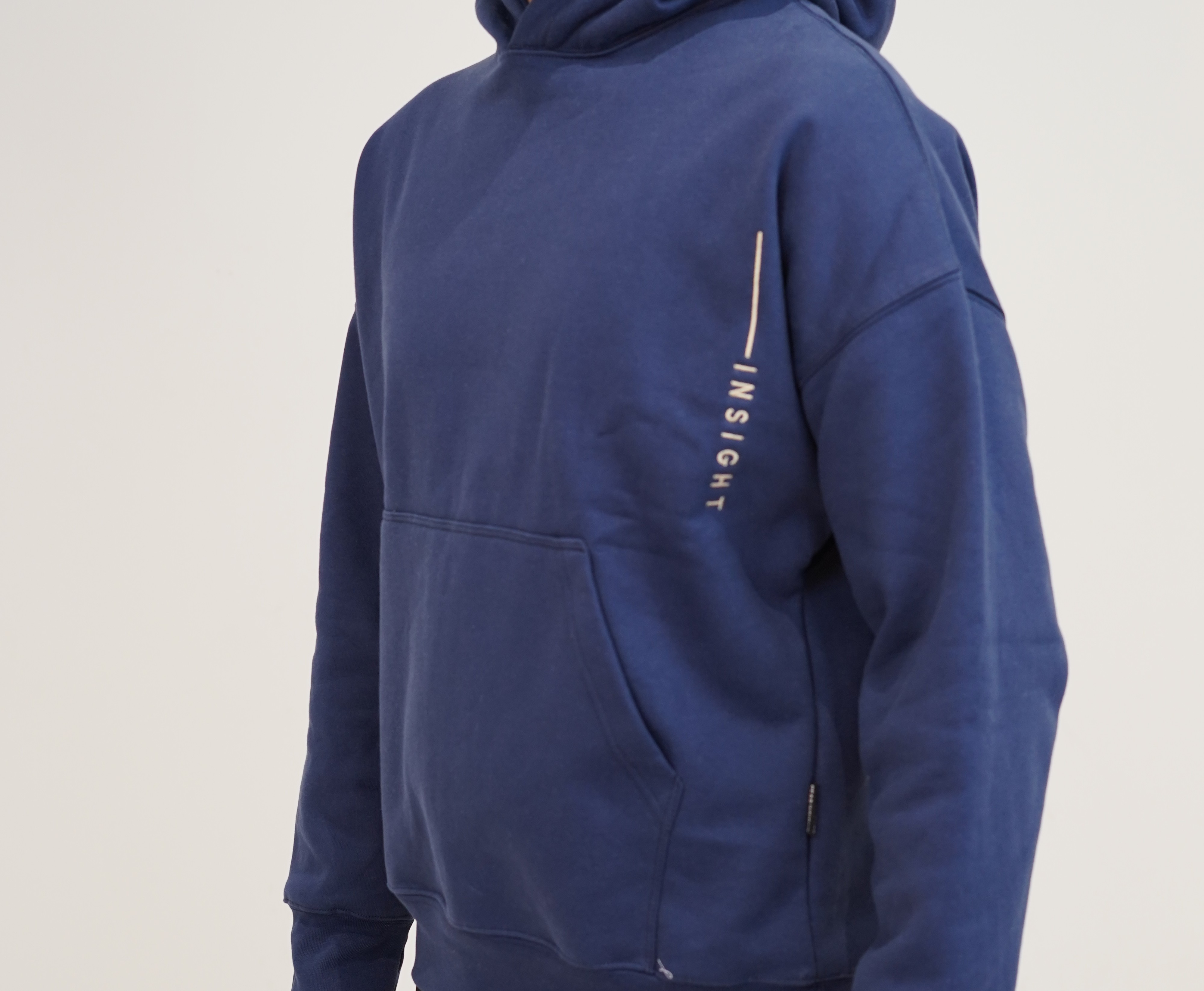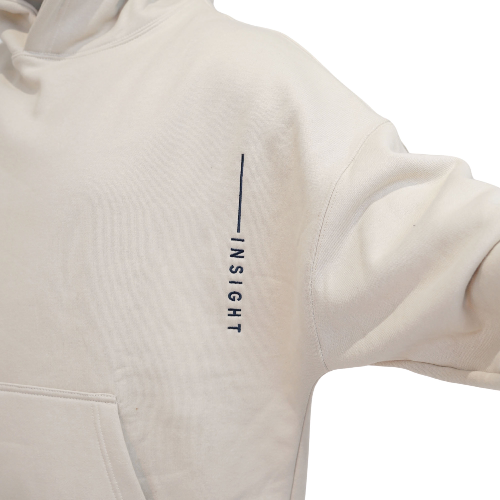 The Insight Trace Hoodie is divine wisdom etched in subtlety. Off-white 465 GSM heavyweight cotton, oversized fit with dropped shoulders and a deep kangaroo pocket. The front and back remain intentionally blank, but the left sleeve bears a single vertical navy line that traces downward into the word “INSIGHT”—a minimalist path reminding you that true revelation often follows a quiet, guided line. Clean, refined, and profoundly intentional. For those who carry the message in the margins. Ships in our signature premium packaging.
